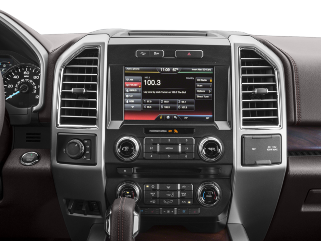 This Vehicle Includes the Following Options: Equipment Group 601A Luxury (20 Machined-Aluminum Wheels, Auto High Beam w/Rain-Sensing Windshield Wipers, BLIS Blind Spot Information System, Inflatable Rear Safety Belts, Multi-Contour Driver & Passenger Seats, Power-Deployable Running Boards, and Tailgate Step w/Tailgate Lift Assist), FX4 Off-Road Package (4x4 FX4 Off-Road Bodyside Decal, Front & Rear Off-Road Tuned Shock Absorbers, and Hill Descent Control), Max Trailer Tow Package (Auxiliary Transmission Oil Cooler, Class IV Trailer Hitch Receiver, Integrated Trailer Brake Controller, Pro Trailer Backup Assist, and Upgraded Front Stabilizer Bar), Technology Package (Lane-Keeping System), 4WD, 10 Speakers, 18 Machined-Aluminum Wheels, 4-Wheel Disc Brakes, ABS brakes, Adaptive Cruise Control & Collision Warning, Adjustable pedals, Air Conditioning, Alloy wheels, AM/FM radio: SiriusXM, Auto tilt-away steering wheel, Auto-dimming door mirrors, Auto-dimming Rear-View mirror, Automatic temperature control, Brake assist, Bumpers: chrome, CD player, Compass, Delay-off headlights, Driver door bin, Driver vanity mirror, Dual front impact airbags, Dual front side impact airbags, Electronic Stability Control, Extended Range 36 Gallon Fuel Tank, Exterior Parking Camera Rear, Front anti-roll bar, Front Bucket Seats, Front Center Armrest, Front dual zone A/C, Front fog lights, Front License Plate Bracket, Front reading lights, Front wheel independent suspension, Fully automatic headlights, Garage door transmitter, Genuine wood dashboard insert, Genuine wood door panel insert, Heated door mirrors, Heated front seats, Heated rear seats, Heated steering wheel, Illuminated entry, King Ranch Leather Bucket Seats, Low tire pressure warning, Memory seat, Navigation System, Occupant sensing airbag, Outside temperature display, Overhead airbag, Overhead console, Panic alarm, Passenger door bin, Passenger vanity mirror, Pedal memory, Power door mirrors, Power driver seat, Power passenger seat, Power steering, Power windows, Radio data system, Radio: Sony Single CD w/HD & SiriusXM Satellite, Rear Parking Sensors, Rear reading lights, Rear seat center armrest, Rear step bumper, Rear window defroster, Remote keyless entry, Security system, Speed control, Speed-sensing steering, Split folding rear seat, Steering wheel memory, Steering wheel mounted audio controls, SYNC 3, Tachometer, Telescoping steering wheel, Tilt steering wheel, Traction control, Trip computer, Turn signal indicator mirrors, Twin Panel Moonroof, Variably intermittent wipers, Ventilated front seats, Voice-Activated Navigation, and Voltmeter.