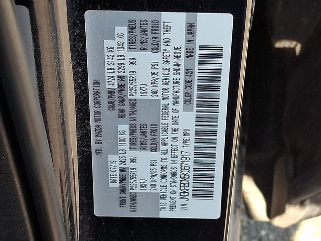 This Vehicle Includes the Following Options: GT Premium Package (Active Driving Display (Windshield Type), Auto-Fold Door Mirror, Heated Rear Seats, Heated Steering Wheel, Ventilated Front Seats, and Windshield Wiper De-Icer), 10 Speakers, 4-Wheel Disc Brakes, 4.624 Axle Ratio, ABS brakes, Air Conditioning, Alloy wheels, AM/FM radio: SiriusXM, AppLink/Apple CarPlay and Android Auto, Auto High-beam Headlights, Auto-dimming Rear-View mirror, Automatic temperature control, Bose 10-Speaker Audio Sound System, Brake assist, Bumpers: body-color, Delay-off headlights, Driver door bin, Driver vanity mirror, Dual front impact airbags, Dual front side impact airbags, Electronic Stability Control, Emergency communication system, Exterior Parking Camera Rear, Four wheel independent suspension, Front anti-roll bar, Front Bucket Seats, Front Center Armrest, Front dual zone A/C, Front fog lights, Front reading lights, Fully automatic headlights, Garage door transmitter: HomeLink, Heated door mirrors, Heated front seats, Heated Front Sport Seats, Illuminated entry, Leather Seat Trim, Leather Shift Knob, Low tire pressure warning, Mazda Navigation System, Memory seat, Navigation system: MAZDA CONNECT, Occupant sensing airbag, Outside temperature display, Overhead airbag, Overhead console, Panic alarm, Passenger door bin, Passenger vanity mirror, Power door mirrors, Power driver seat, Power Liftgate, Power moonroof, Power passenger seat, Power steering, Power windows, Radio data system, Radio: AM/FM/HD Audio System, Rain sensing wipers, Rear anti-roll bar, Rear reading lights, Rear seat center armrest, Rear window defroster, Rear window wiper, Remote keyless entry, Speed control, Speed-sensing steering, Split folding rear seat, Spoiler, Steering wheel mounted audio controls, Tachometer, Telescoping steering wheel, Tilt steering wheel, Traction control, Trip computer, Turn signal indicator mirrors, Variably intermittent wipers, and Wheels: 19 x 7J Aluminum Alloy w/Silver Finish.