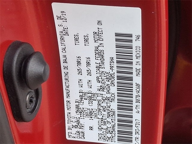 2020 Toyota Tacoma TRD Sport V6 3.5L V6 PDI DOHC 24V LEV3-ULEV70 278hp 4WD 6-Speed Barcelona Red 4WD, ABS brakes, Alloy wheels, Electronic Stability Control, Heated door mirrors, Illuminated entry, Low tire pressure warning, Remote keyless entry, Traction control.
