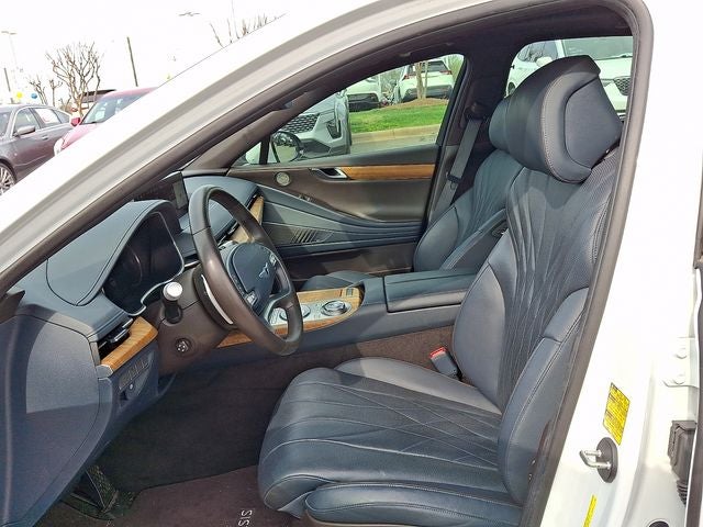This Vehicle Includes the Following Options: Prestige Package (3-Zone Climate, Lexicon Premium Audio w/21-Speakers, Matte Finish Wood Trim, Option Group 02, Panoramic Roof, Power Rear & Manual Rear Side Sunshades, Power Trunk, Ventilated Front Seats, and Wheels: 19 x 8.5J Fr & 19 x 9.5J Rr Alloy), 12 Speakers, 4-Wheel Disc Brakes, ABS brakes, Air Conditioning, Alloy wheels, AM/FM radio: SiriusXM, Android Auto & Apple CarPlay, Anti-whiplash front head restraints, Auto High-beam Headlights, Auto tilt-away steering wheel, Auto-dimming door mirrors, Auto-dimming Rear-View mirror, Automatic temperature control, Blind-Spot View Monitor, Brake assist, Bumpers: body-color, Compass, Delay-off headlights, Digital Key (NFC), Driver door bin, Driver Seat Power Bolster & Cushion Extension, Driver vanity mirror, Dual front impact airbags, Dual front side impact airbags, Electronic Stability Control, Emergency communication system: Genesis Connected Services, Ergo Motion Seat, Exterior Parking Camera Rear, First Aid Kit, Four wheel independent suspension, Front anti-roll bar, Front Bucket Seats, Front Center Armrest, Front dual zone A/C, Front Passenger Seat Walk-In Device, Front reading lights, Front Wireless Device Charger, Fully automatic headlights, Garage door transmitter: HomeLink, Heated door mirrors, Heated Front Bucket Seats, Heated front seats, Illuminated entry, Knee airbag, Leather Seating Surfaces, Leather steering wheel, Leatherette Seating Surfaces, Low tire pressure warning, Memory seat, Mud Guards, Navigation System, Occupant sensing airbag, Outside temperature display, Overhead airbag, Overhead console, Panic alarm, Passenger door bin, Passenger vanity mirror, Power Door Closure, Power door mirrors, Power driver seat, Power passenger seat, Power steering, Power windows, Radio data system, Radio: AM/FM/HD/SiriusXM Integrated Navi System, Rain sensing wipers, Rear anti-roll bar, Rear Bumper Applique, Rear Occupant Alert (Ultrasonic), Rear Parking Collision - Avoidance Assist, Rear reading lights, Rear seat center armrest, Rear side impact airbag, Rear window defroster, Remote keyless entry, Remote Smart Parking Assist, Reversible Cargo Tray, Security system, Speed control, Speed-sensing steering, Speed-Sensitive Wipers, Steering wheel memory, Steering wheel mounted audio controls, Surround View Monitor, Tachometer, Telescoping steering wheel, Tilt steering wheel, Traction control, Trip computer, Turn signal indicator mirrors, Variably intermittent wipers, Wheel Locks, and Wheels: 18 x 8.0J Alloy.