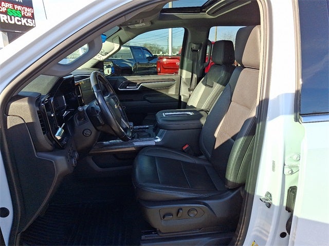 This Vehicle Includes the Following Options: High Capacity Suspension Package, LTZ Convenience Package (2 USB Data Ports, Floor Mounted Center Console, Power Tilt & Telescoping Steering Column, Premium Bose 7-Speaker Sound System, Ventilated Driver & Front Passenger Seats, and Wireless Charging), LTZ Convenience Package II (2nd Row Heated Outboard Seats, Adaptive Cruise Control, Power Sliding Rear Window w/Rear Defogger, and Universal Home Remote), LTZ Plus Package, LTZ Premium Package (Power Sunroof), Preferred Equipment Group 1LZ (10-Way Power Driver Seat w/Lumbar, 10-Way Power Passenger Seat Adjuster w/Lumbar, 12.3 Multicolor Reconfigurable Digital Display, 120-Volt Bed Mounted Power Outlet, 120-Volt Instrument Panel Power Outlet, Auto-Dimming Inside Rear-View Mirror, Auto-Locking Rear Differential, Bluetooth® For Phone, Chevrolet Connected Access Capable, Chrome Mirror Caps, Color-Keyed Carpeting Floor Covering, Compass, Deep-Tinted Glass, Driver Memory, Dual Rear USB Ports (Charge Only), Electric Rear-Window Defogger, Electrical Steering Column Lock, Electronic Cruise Control, Front Frame-Mounted Black Recovery Hooks, Front LED Fog Lamps, Front Rainsensing Wipers, Front Rubberized Vinyl Floor Mats, Heated Driver & Front Outboard Passenger Seats, Heated Steering Wheel, Hitch Guidance w/Hitch View, Integrated Trailer Brake Controller, Keyless Open & Start, Leather Wrapped Steering Wheel, LED Cargo Area Lighting, OnStar & Chevrolet Connected Services Capable, Outside Heated Power-Adjustable Mirrors, Power Front Passenger Windows w/Express Up/Down, Power Front Windows w/Driver Express Up/Down, Power Rear Windows w/Express Down, Power Tailgate, Rear Rubberized-Vinyl Floor Mats, Rear Wheelhouse Liners, Remote Vehicle Starter System, SiriusXM w/360L, Standard Tailgate, Steering Wheel Audio Controls, Theft Deterrent System (Unauthorized Entry), Trailering App, Wi-Fi Hot Spot Capable, and Wireless Phone Projection), Safety Package (HD Surround Vision, Perimeter Lighting, Rear Cross Traffic Alert-Braking, Rear Pedestrian Detection, Safety Alert Seat, Trailer Camera Provisions, Trailer Side Blind Zone Alert, and Ultrasonic Front & Rear Park Assist), Technology Package (15 Diagonal Multicolor Head-Up Display, Bed View Camera, and Rear Camera Mirror), Trailering Package (Hitch Guidance), Up-Level Rear Seat w/Storage Package, Z71 Off-Road Package (Dual Exhaust w/Polished Outlets, Heavy-Duty Air Filter, Hill Descent Control, and Off-Road Suspension), 10-Speed Automatic, 4WD, Jet Black Leather, 170 Amp Alternator, 3.23 Rear Axle Ratio, 4-Wheel Disc Brakes, 7 Speakers, ABS brakes, Air Conditioning, Alloy wheels, AM/FM radio: SiriusXM with 360L, Apple CarPlay/Android Auto, Auto High-beam Headlights, Auto-dimming door mirrors, Auto-dimming Rear-View mirror, Automatic Emergency Braking, Automatic temperature control, Auxiliary External Transmission Oil Cooler, Brake assist, Bumpers: chrome, Delay-off headlights, Driver door bin, Driver vanity mirror, Dual front impact airbags, Dual front side impact airbags, Electronic Stability Control, Electronic Transmission Range Selector Shifter, Following Distance Indicator, Forward Collision Alert, Front anti-roll bar, Front Bucket Seats, Front Center Armrest, Front dual zone A/C, Front fog lights, Front Pedestrian Braking, Front reading lights, Front wheel independent suspension, Fully automatic headlights, Heated door mirrors, Heated front seats, Heated steering wheel, Illuminated entry, IntelliBeam Automatic High Beam On/Off, Lane Keep Assist w/Lane Departure Warning, Low tire pressure warning, Memory seat, Not Equip w/Ventilated Seat Cushion Blower Motor, Not Equipped w/Dynamic Fuel Management, Not Equipped w/Front & Rear Park Assist, Not Equipped w/Steering Column Lock, Occupant sensing airbag, Outside temperature display, Overhead airbag, Overhead console, Panic alarm, Passenger door bin, Passenger vanity mirror, Perforated Leath
