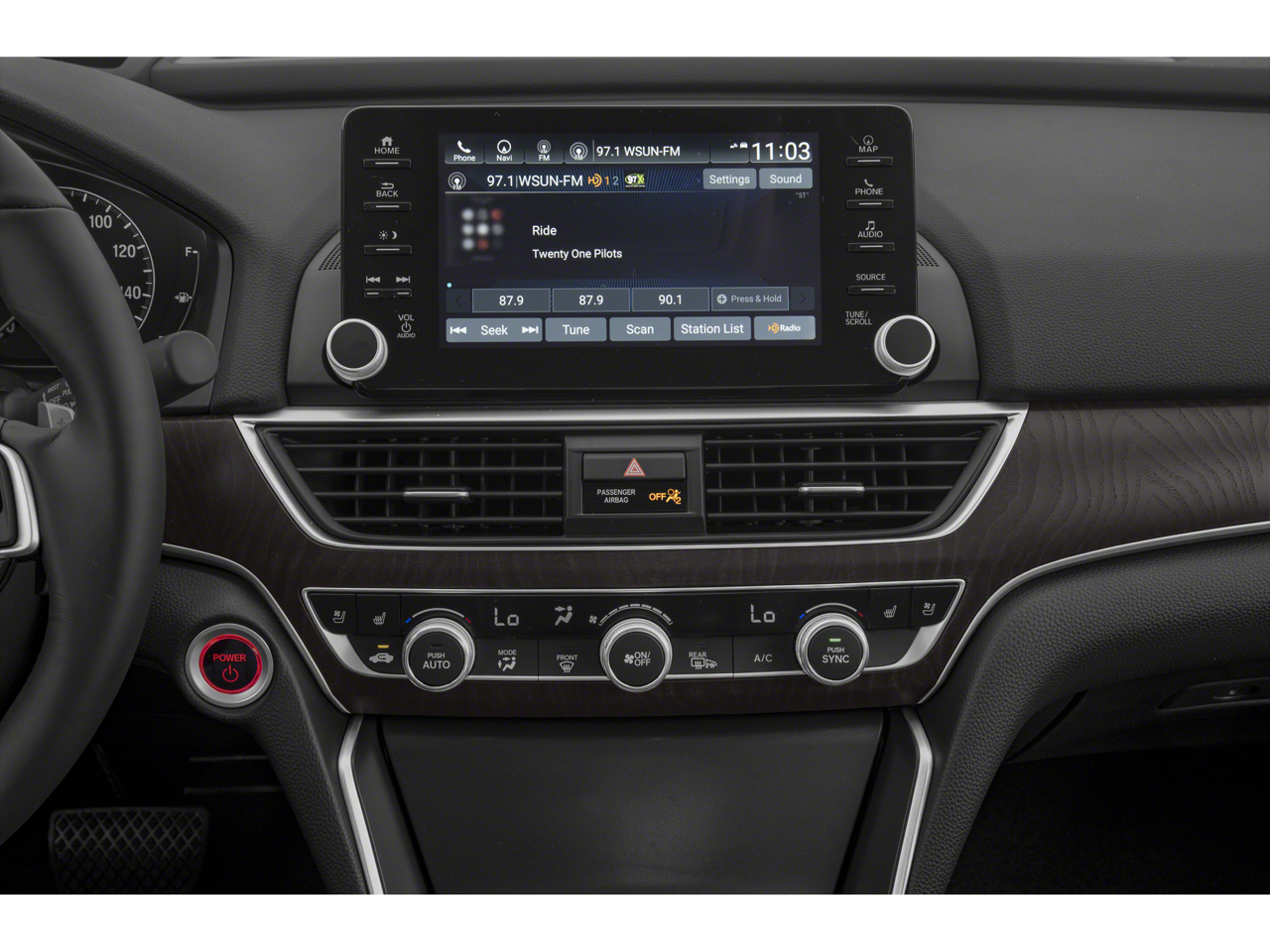 - Radio: 450-Watt HD Premium Audio System -inc: 10 speakers including subwoofer, 8" display audio w/high-resolution electrostatic touch-screen, knobs and hard keys for primary controls and customizable feature settings, Bluetooth® HandsFreeLink, Bluetooth® streaming audio, SMS text message function, Radio Data System (RDS), Speed-Sensitive Volume Compensation (SVC), HondaLink, wireless Apple CarPlay integration, wireless Android Auto integration, 1 2.5-amp USB smartphone/audio interface port in front console, 1 2.5-amp USB charging port in front console, 2 2nd-row 2.5-amp USB charging ports, Honda Satellite-Linked Navigation System w/voice recognition and Honda HD digital traffic, HondaLink subscription services, Wi-Fi hotspot capability, illuminated steering wheel-mounted controls, body-colored fin-type roof-mounted antenna and SiriusXM, SiriusXM requires a subscription after any trial period, If you decide to continue your SiriusXM service at the end of your trial subscription, the plan you choose will automatically renew and bill at then-current rates until you call SiriusXM at 1-866-635-2349 to cancel, See our Customer Agreement for complete terms at www.siriusxm.com, Fees and programming subject to change, Available in the 48 contiguous United States and D.C, SiriusXM and all related marks and logos are trademarks of SiriusXM Radio Inc, The Honda Satellite-Linked Navigation System functions in the United States (not including territories, except Puerto Rico) and Canada, Honda HD Digital Traffic service only available in the United States, except Alaska, Please see your Honda dealer for details, HondaLink Subscription Services come w/complimentary trials of Security for one year and a Remote/Concierge trial for three months, Enrollment is required to access the Remote/Concierge trial and to access certain features of Security, At the end of each trial period, purchase of a subscription is required to continue the respective services