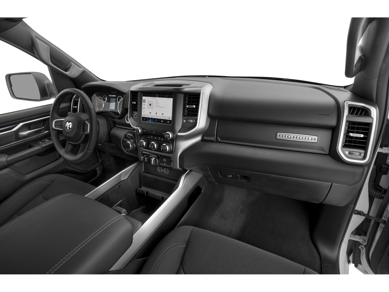 THIS VEHICLE INCLUDES THE FOLLOWING FEATURES AND OPTIONS: Big Horn Level 1 Equipment Group (2nd Row In Floor Storage Bins, 4G LTE Wi-Fi Hot Spot, 8.4 Touchscreen Display, Apple CarPlay, Auto-Dimming Exterior Driver Mirror, Auto-Dimming Rear-View Mirror, Black Exterior Mirrors, Black Premium Power Mirrors, Bluetooth® Handsfree Phone & Audio, Class IV Receiver Hitch, Connectivity - US/Canada, Convex Wide-Angle Exterior Mirror Insert, Electric Shift-On-Demand Transfer Case, Exterior Mirrors Courtesy Lamps, Exterior Mirrors w/Heating Element, Exterior Mirrors w/Supplemental Signals, For Details, Visit DriveUconnect.com, For More Info, Call 800-643-2112, Front Fog Lamps, Glove Box Lamp, Google Android Auto, GPS Antenna Input, Heated Front Seats, Heated Steering Wheel, Integrated Center Stack Radio, Passenger Sun Visor w/Illuminated Mirror, Power-Folding Mirrors, Radio: Uconnect 5 W w/8.4 Display, Rear Dome w/On/Off Switch Lamp, Rear Power Sliding Window, Rear Window Defroster, SiriusXM Satellite Radio, and USB Host Flip), Quick Order Package 23R Lone Star (Regional) (Lone Star Badge), 3 Rear Seat Head Restraints, 3.21 Rear Axle Ratio, 4 Way Front Headrests, 4-Wheel Disc Brakes, 48V Belt Starter Generator, 6 Speakers, ABS brakes, Air Conditioning, Alloy wheels, AM/FM radio, Brake assist, Bumpers: chrome, Cloth Bench Seat, Compass, Delay-off headlights, Driver door bin, Dual front impact airbags, Dual front side impact airbags, Electronic Stability Control, Emergency communication system: SiriusXM Guardian, Front anti-roll bar, Front Center Armrest w/Storage, Front License Plate Bracket, Front reading lights, Front Seat Back Map Pockets, Front wheel independent suspension, Fully automatic headlights, Global Telematics Box Module (TBM), Heated door mirrors, Illuminated entry, Integrated Voice Command w/Bluetooth®, Leather steering wheel, Low tire pressure warning, Manufacturer's Statement of Origin, Occupant sensing airbag, Outside temperature display, Overhead airbag, Overhead console, Panic alarm, ParkView Rear Back-Up Camera, Passenger door bin, Passenger vanity mirror, Power door mirrors, Power steering, Power windows, Radio data system, Radio: Uconnect 3 w/5 Display, RAM Grille Badge - Chrome, Rear 60/40 Folding Seat, Rear anti-roll bar, Rear seat center armrest, Rear step bumper, Remote keyless entry, Remote Start System, Speed control, Split folding rear seat, Steering wheel mounted audio controls, Tachometer, Telescoping steering wheel, Tilt steering wheel, Traction control, Trip computer, Variably intermittent wipers, Voltmeter, and Wheels: 18 x 8 Cast-Aluminum Painted.