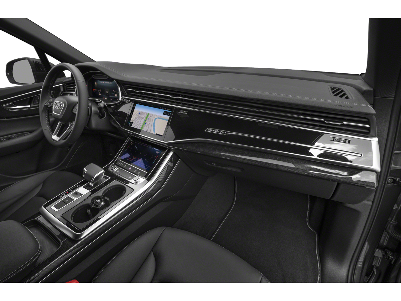 THIS VEHICLE INCLUDES THE FOLLOWING FEATURES AND OPTIONS: 10 Speakers, 3rd row seats: bench, 4-Wheel Disc Brakes, ABS brakes, Air Conditioning, Alloy wheels, AM/FM radio: SiriusXM w/360L, Auto High-beam Headlights, Auto-dimming door mirrors, Auto-dimming Rear-View mirror, Automatic temperature control, Brake assist, Bumpers: body-color, Compass, Delay-off headlights, Driver door bin, Driver vanity mirror, Dual front impact airbags, Dual front side impact airbags, Electronic Stability Control, Emergency communication system: Audi connect CARE, Exterior Parking Camera Rear, Four wheel independent suspension, Front anti-roll bar, Front Bucket Seats, Front Center Armrest, Front dual zone A/C, Front fog lights, Front reading lights, Fully automatic headlights, Garage door transmitter: HomeLink, Genuine wood door panel insert, Heated door mirrors, Heated Front Bucket Seats, Heated front seats, Illuminated entry, Leather Seating Surfaces, Leather Shift Knob, Leather steering wheel, Low tire pressure warning, Memory seat, Navigation system: Audi MMI Navigation plus with Touch Response, Occupant sensing airbag, Outside temperature display, Overhead airbag, Overhead console, Panic alarm, Passenger door bin, Passenger vanity mirror, Power door mirrors, Power driver seat, Power Liftgate, Power moonroof: Panoramic, Power passenger seat, Power steering, Power windows, Radio data system, Radio: Audi Sound System, Rain sensing wipers, Rear air conditioning, Rear anti-roll bar, Rear fog lights, Rear reading lights, Rear seat center armrest, Rear side impact airbag, Rear window defroster, Rear window wiper, Reclining 3rd row seat, Remote keyless entry, Security system, Speed control, Speed-sensing steering, Split folding rear seat, Spoiler, Steering wheel memory, Steering wheel mounted audio controls, Tachometer, Telescoping steering wheel, Tilt steering wheel, Traction control, Trip computer, Turn signal indicator mirrors, Variably intermittent wipers, and Wheels: 19 5-Arm-Star Design.
