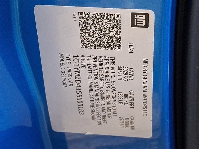 This Vehicle Includes the Following Options: Battery Protection Package, Coupe Engine Appearance Package (Engine Lighting and Engine Specification Plaque (LPO)), Custom Leather Wrapped Interior Package, Memory Driver & Passenger Convenience Package, Preferred Equipment Group 3LZ (2 Cargo Nets, Bose Performance Series Sound System w/14 Speakers, Driver Power Bolster Seat Adjuster, Electrical Theft Deterrent System, HD Front & Rear Vision Cameras, Heated & Vented Driver & Passenger Seats, Heated Steering Wheel, Passenger Power Bolster Seat Adjuster, Performance Data & Video Recorder, Power Driver Lumbar Control Seat Adjuster, Power Passenger Lumbar Control Seat Adjuster, Power-Adjustable Outside Heated Mirrors, Rear Cross Traffic Alert, Side Blind Zone Alert, Sueded Microfiber-Wrapped Upper Interior Trim Pkg, Universal Home Remote, Vehicle Inclination Theft Deterrent Sensor, Vehicle Interior Movement Theft Deterrent Sensor, and Wireless Charging for Devices), ZER Performance Package, 14 Speakers, 4-Wheel Disc Brakes, 8-Way Power Driver Seat Adjuster, 8-Way Power Passenger Seat Adjuster, ABS brakes, Adaptive suspension, Air Conditioning, Alloy wheels, AM/FM radio: SiriusXM, Auto High-beam Headlights, Auto-dimming door mirrors, Auto-dimming Rear-View mirror, Automatic Leveling System Headlamp Control, Automatic temperature control, Black Lug Nuts (LPO), Blue Custom Leather Stitch, Brake assist, Bumpers: body-color, Carbon Fiber/Sueded Microfiber-Wrap Steering Wheel, Carbon Flash Metallic-Painted Outside Mirrors, Ceramic disc brakes: front and rear, Compass, Competition Sport Bucket Seats, Delay-off headlights, Driver door bin, Driver vanity mirror, Dual front impact airbags, Dual front side impact airbags, Electronic Stability Control, Emergency communication system: OnStar and Chevrolet connected services capable, Exterior Parking Camera Rear, Four wheel independent suspension, Front anti-roll bar, Front Bucket Seats, Front Center Armrest, Front dual zone A/C, Front Lift Adjustable Height w/Memory, Front reading lights, Fully automatic headlights, Garage door transmitter, GT2 Bucket Seats, Heads-Up Display, Heated door mirrors, Heated front seats, Heated steering wheel, Illuminated entry, Jake C8.R Rear Hash Graphic (LPO), Jake Hood Graphic (LPO), Leather Shift Knob, Leather steering wheel, Low tire pressure warning, Memory seat, Napa Lthr Seating Surfaces w/Perforated Inserts, Navigation System, Occupant sensing airbag, Outside temperature display, Overhead console, Panic alarm, Passenger door bin, Passenger vanity mirror, Personalized Plaque w/Corvette Museum Logo, Power door mirrors, Power driver seat, Power passenger seat, Power steering, Power windows, Premium audio system: Chevrolet Infotainment 3 Premium, Radio data system, Radio: Chevrolet Infotainment 3 Premium System, Rear anti-roll bar, Rear window defroster, Remote keyless entry, Security system, Speed control, Speed-sensing steering, Spoiler, Sport steering wheel, Steering wheel memory, Steering wheel mounted audio controls, Tachometer, Telescoping steering wheel, Tension Blue Seat Belt Color, Tilt steering wheel, Traction control, Trip computer, Turn signal indicator mirrors, Variably intermittent wipers, Ventilated front seats, Visible Carbon Fiber Engine Cross Brace (LPO), Visible Carbon Fiber Ground Effects, Visible Carbon Fiber Outside Mirror Covers (LPO), Voltmeter, Wheels: 20 x 10 Fr/21 x 13 Rr Carbon Flash Alum, and Wheels: 20 x 10 Fr/21 x 13 Rr Pearl Nickel.