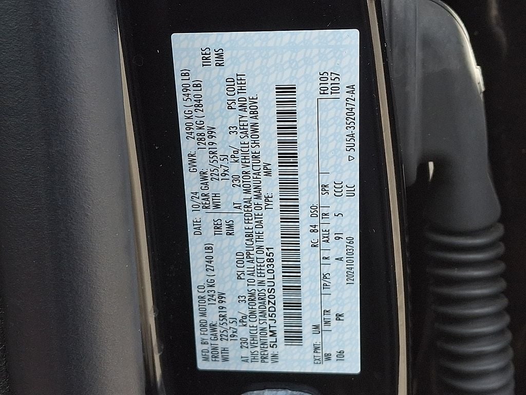 This Vehicle Includes the Following Options: Equipment Group 301A (2 Additional USB Ports in Rear of Center Console, 60/40 EasyFold Rear Seat w/Power Seatback Release, Frameless Auto Dimming Rearview Mirror, Hands-Free Liftgate, Heated Sideview Mirrors, Heated Steering Wheel, Heated/Ventilated Driver & Front Passenger Seats, Phone As A Key (PAAK), Power Tilt/Telescoping Steering Column w/Memory, Rain Sensing Wipers, Universal Garage Door Opener, Windshield Wiper De-Icer, and Wireless Charging Pad), 2.5L i-VCT, 19 Bright Machined Aluminum Wheels, 360-Degree Camera, 4-Wheel Disc Brakes, 9 Speakers, ABS brakes, Adaptive suspension, Air Conditioning, Alexa Built-In, All-Weather Floor Liners, Alloy wheels, AM/FM radio: SiriusXM with 360L, Apple CarPlay/Android Auto, Auto High-beam Headlights, Auto-dimming Rear-View mirror, Automatic temperature control, Brake assist, Bumpers: body-color, Compass, Delay-off headlights, Driver door bin, Driver vanity mirror, Dual front impact airbags, Dual front side impact airbags, Electronic Stability Control, Emergency communication system: 911 Assist, Four wheel independent suspension, Front anti-roll bar, Front Bucket Seats, Front Center Armrest, Front dual zone A/C, Front Parking Sensors, Front reading lights, Fully automatic headlights, Heated door mirrors, Heated front seats, Illuminated entry, Knee airbag, Leather steering wheel, Low tire pressure warning, Memory seat, Navigation system: Connected Navigation (4-year trial), Occupant sensing airbag, Outside temperature display, Overhead airbag, Overhead console, Panic alarm, Passenger door bin, Passenger vanity mirror, Post-Collision Braking, Power door mirrors, Power driver seat, Power Liftgate, Power moonroof: Panoramic Vista Roof, Power passenger seat, Power steering, Power windows, Premium Leather-Trimmed Heated Captain's Chairs, Radio data system, Radio: Lincoln Premium Audio System w/MP3, Rear anti-roll bar, Rear Parking Sensors, Rear reading lights, Rear seat center armrest, Rear window defroster, Rear window wiper, Remote keyless entry, Reverse Brake Assist, Security system, SiriusXM w/360L Radio, Speed control, Speed-sensing steering, Speed-Sensitive Wipers, Split folding rear seat, Spoiler, Steering wheel mounted A/C controls, Steering wheel mounted audio controls, SYNC 4 Communications & Entertainment System, Tachometer, Telescoping steering wheel, Tilt steering wheel, Traction control, Trip computer, and Variably intermittent wipers.