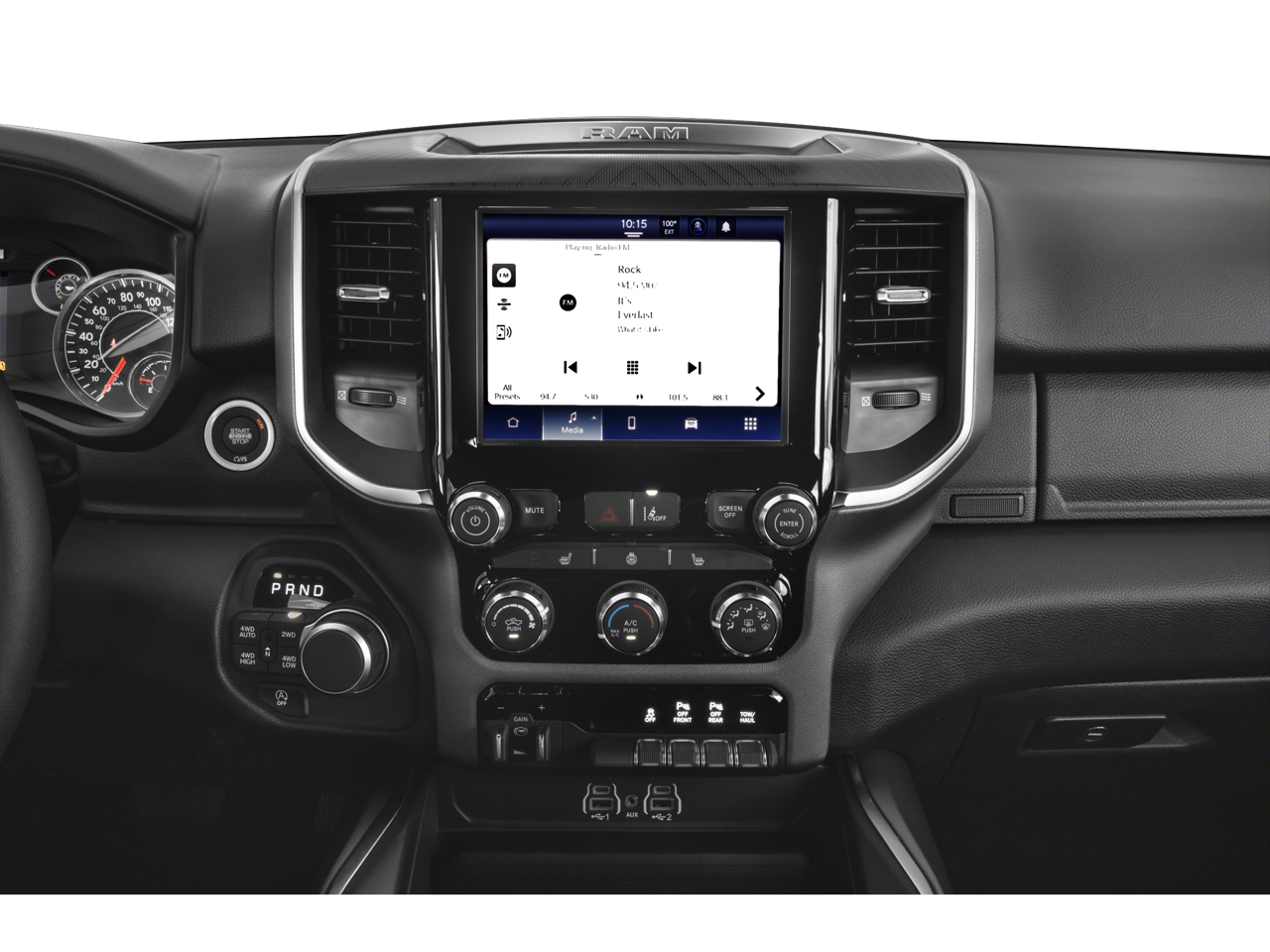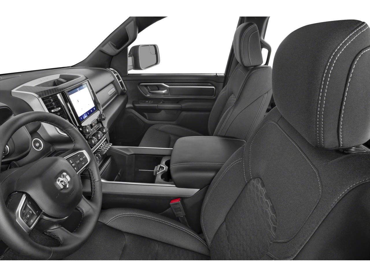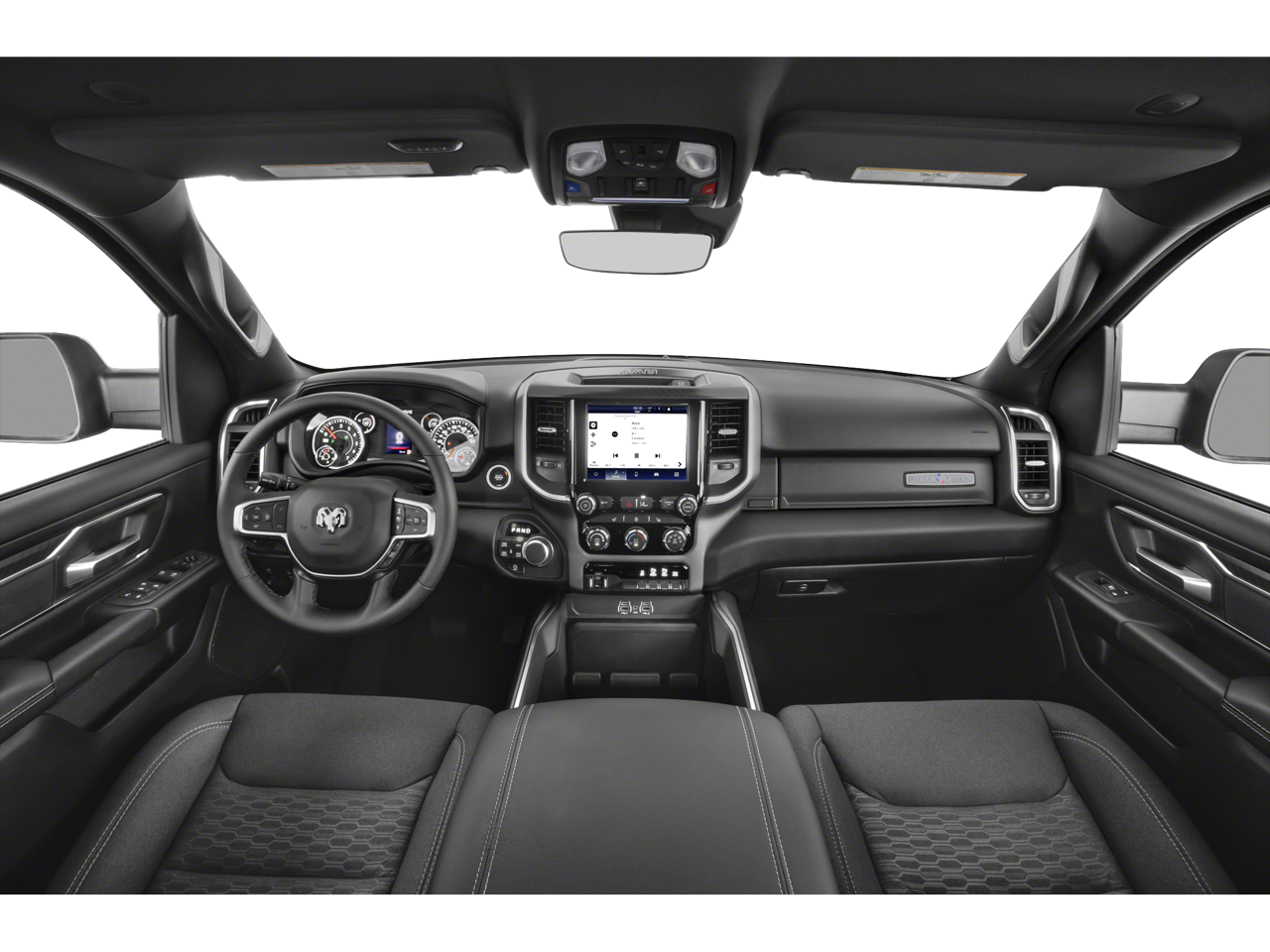 THIS VEHICLE INCLUDES THE FOLLOWING FEATURES AND OPTIONS: Big Horn Level 2 Equipment Group (115V Auxiliary Power Outlet, 115V Auxiliary Rear Power Outlet, 12 Touchscreen Display, 2nd Row In Floor Storage Bins, 400W Inverter, 4G LTE Wi-Fi Hot Spot, 9 Amplified Speakers w/Subwoofer, Air Conditioning ATC w/Dual Zone Control, Apple CarPlay, Auto Power-Folding Mirrors, Auto-Dimming Exterior Driver Mirror, Auto-Dimming Rear-View Mirror, Black Exterior Mirrors, Black Premium Power Mirrors, Cluster 7.0 TFT Color Display, Configurable Drive Mode, Connected Travel & Traffic Services, Connectivity - US/Canada, Convex Wide-Angle Exterior Mirror Insert, Exterior Mirrors Courtesy Lamps, Exterior Mirrors w/Heating Element, Exterior Mirrors w/Supplemental Signals, Glove Box Lamp, Google Android Auto, GPS Antenna Input, GPS Navigation, HD Radio, Heated Front Seats, Heated Steering Wheel, Integrated Voice Command w/Bluetooth®, Leather Wrapped Steering Wheel, LED Dome Lamp w/On/Off Switch, LED Footwell Lighting, Media Hub w/2 Charge Only USBs, Overhead LED Lamps, Power 2-Way Driver Lumbar Adjust, Power Adjust 8-Way Driver Seat, Power Adjustable Pedals, Premium Overhead Console, Radio: Uconnect 5 Nav w/12.0 Display, Rear Power Sliding Window, Rear Window Defroster, Remote Tailgate Release, Security Alarm, SiriusXM w/360L, Steering Wheel Mounted Audio Controls, Sun Visors w/Illuminated Vanity Mirrors, Universal Garage Door Opener, and USB Host Flip), Quick Order Package 21Z Big Horn, Quick Order Package 23Z Big Horn (Big Horn Badge), 3 Rear Seat Head Restraints, 4 Way Front Headrests, 4-Wheel Disc Brakes, 6 Speakers, ABS brakes, Air Conditioning, Alloy wheels, AM/FM radio, Apple CarPlay/Android Auto, Auto High-beam Headlights, Brake assist, Bumpers: chrome, Cloth Bench Seat, Compass, Delay-off headlights, Driver door bin, Dual front impact airbags, Dual front side impact airbags, Electronic Stability Control, Front anti-roll bar, Front Center Armrest w/Storage, Front fog lights, Front License Plate Bracket, Front reading lights, Front Seat Back Map Pockets, Front wheel independent suspension, Fully automatic headlights, Heated door mirrors, Illuminated entry, Low tire pressure warning, Manual Adjust 4-Way Front Passenger Seat, Manual Folding Exterior Mirrors, Manufacturer's Statement of Origin, Occupant sensing airbag, Outside temperature display, Overhead airbag, Overhead console, Panic alarm, ParkView Rear Back-Up Camera, Passenger door bin, Passenger vanity mirror, Power door mirrors, Power steering, Power windows, Radio data system, Radio: Uconnect 5 W w/8.4 Display, RAM Grille Badge - Chrome, Rear 60/40 Folding Seat, Rear anti-roll bar, Rear seat center armrest, Rear step bumper, Remote keyless entry, Speed control, Split folding rear seat, Supplier Part Tracking (J-1), Tachometer, Telescoping steering wheel, Tilt steering wheel, Traction control, Trip computer, Variably intermittent wipers, Voltmeter, and Wheels: 18 x 8 Cast-Aluminum Painted.