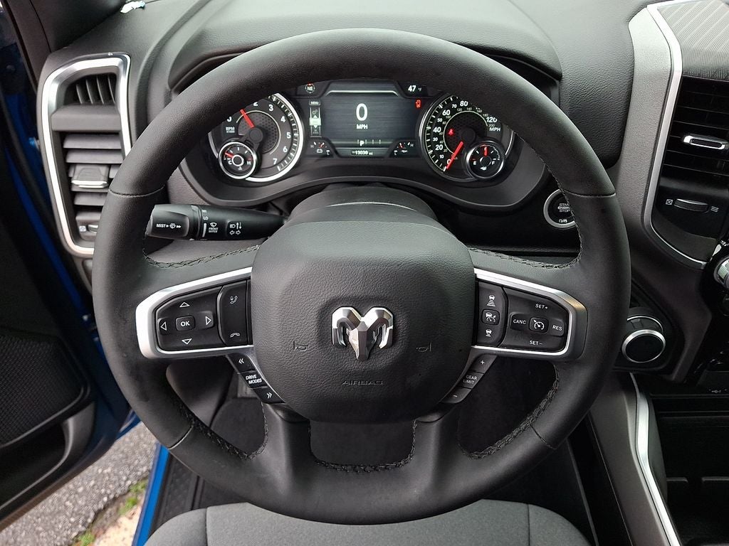 THIS VEHICLE INCLUDES THE FOLLOWING FEATURES AND OPTIONS: Bed Utility Group (Exterior 115V AC Outlet, MOPAR 4 Adjustable Cargo Tie-Down Hooks, MOPAR Spray In Bedliner, and Pick-Up Box Lighting), Big Horn Level 2 Equipment Group (115V Auxiliary Power Outlet, 115V Auxiliary Rear Power Outlet, 12 Touchscreen Display, 2nd Row In Floor Storage Bins, 400W Inverter, 4G LTE Wi-Fi Hot Spot, 9 Amplified Speakers w/Subwoofer, Air Conditioning ATC w/Dual Zone Control, Apple CarPlay, Auto Power-Folding Mirrors, Auto-Dimming Exterior Driver Mirror, Auto-Dimming Rear-View Mirror, Black Exterior Mirrors, Black Premium Power Mirrors, Cluster 7.0 TFT Color Display, Configurable Drive Mode, Connected Travel & Traffic Services, Connectivity - US/Canada, Convex Wide-Angle Exterior Mirror Insert, Exterior Mirrors Courtesy Lamps, Exterior Mirrors w/Heating Element, Exterior Mirrors w/Supplemental Signals, Glove Box Lamp, Google Android Auto, GPS Antenna Input, GPS Navigation, HD Radio, Heated Front Seats, Heated Steering Wheel, Integrated Voice Command w/Bluetooth®, Leather Wrapped Steering Wheel, LED Dome Lamp w/On/Off Switch, LED Footwell Lighting, Media Hub w/2 Charge Only USBs, Overhead LED Lamps, Power 2-Way Driver Lumbar Adjust, Power Adjust 8-Way Driver Seat, Power Adjustable Pedals, Premium Overhead Console, Radio: Uconnect 5 Nav w/12.0 Display, Rear Power Sliding Window, Rear Window Defroster, Remote Tailgate Release, Security Alarm, SiriusXM w/360L, Steering Wheel Mounted Audio Controls, Sun Visors w/Illuminated Vanity Mirrors, Universal Garage Door Opener, and USB Host Flip), Quick Order Package 23Z Big Horn, 3 Rear Seat Head Restraints, 3.21 Rear Axle Ratio, 4 Way Front Headrests, 4-Wheel Disc Brakes, 6 Speakers, ABS brakes, Air Conditioning, Alloy wheels, AM/FM radio, Apple CarPlay/Android Auto, Auto High-beam Headlights, Brake assist, Bumpers: chrome, Cloth Bench Seat, Compass, Delay-off headlights, Driver door bin, Dual front impact airbags, Dual front side impact airbags, Electronic Stability Control, Exterior Parking Camera Rear, Front anti-roll bar, Front Center Armrest w/Storage, Front fog lights, Front reading lights, Front Seat Back Map Pockets, Front wheel independent suspension, Fully automatic headlights, Heated door mirrors, Illuminated entry, Low tire pressure warning, Manual Adjust 4-Way Front Passenger Seat, Manual Folding Exterior Mirrors, Manufacturer's Statement of Origin, Occupant sensing airbag, Outside temperature display, Overhead airbag, Overhead console, Panic alarm, Passenger door bin, Passenger vanity mirror, Power door mirrors, Power steering, Power windows, Radio data system, Radio: Uconnect 5 W w/8.4 Display, RAM Grille Badge - Chrome, Rear 60/40 Folding Seat, Rear anti-roll bar, Rear Center Armrest, Rear seat center armrest, Rear step bumper, Remote keyless entry, Speed control, Split folding rear seat, Supplier Part Tracking (J-1), Tachometer, Telescoping steering wheel, Tilt steering wheel, Traction control, Trip computer, Variably intermittent wipers, Voltmeter, and Wheels: 18 x 8 Cast-Aluminum Painted. Odometer is 4861 miles below market average!