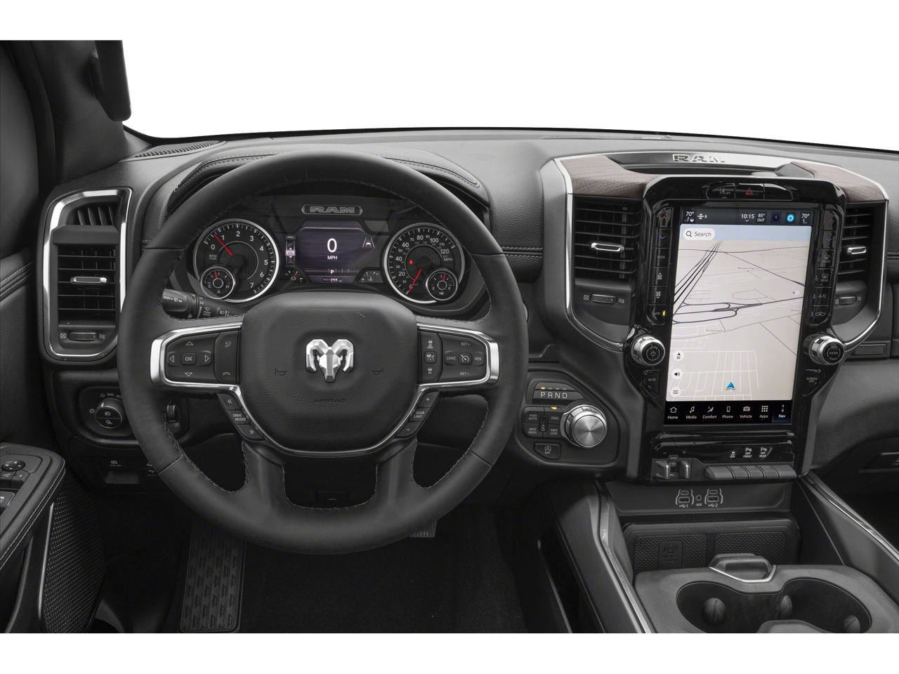 THIS VEHICLE INCLUDES THE FOLLOWING FEATURES AND OPTIONS: 10 Speakers, 3 Rear Seat Head Restraints, 3.55 Rear Axle Ratio, 4 Way Front Headrests, 4-Wheel Disc Brakes, 4G LTE Wi-Fi Hot Spot, ABS brakes, Air Conditioning, Alloy wheels, AM/FM radio: SiriusXM with 360L, Apple CarPlay, Apple CarPlay/Android Auto, Audio memory, Auto High-beam Headlights, Auto Power-Folding Mirrors, Auto-dimming door mirrors, Auto-Dimming Exterior Driver Mirror, Auto-dimming Rear-View mirror, Automatic temperature control, Brake assist, Bumpers: chrome, Chrome Exterior Mirrors, Compass, Connected Travel & Traffic Services, Connectivity - US/Canada, Convex Wide-Angle Exterior Mirror Insert, Delay-off headlights, Driver door bin, Driver Seat Memory, Driver vanity mirror, Dual front impact airbags, Dual front side impact airbags, Electronic Stability Control, Exterior Mirrors Courtesy Lamps, Exterior Mirrors w/Heating Element, Exterior Mirrors w/Memory, Exterior Mirrors w/Supplemental Signals, Front anti-roll bar, Front Center Armrest w/Storage, Front dual zone A/C, Front fog lights, Front reading lights, Front Seat Back Map Pockets, Front wheel independent suspension, Fully automatic headlights, Garage door transmitter, Google Android Auto, GPS Antenna Input, GPS Navigation, HD Radio, Heated door mirrors, Heated Front Seats, Heated front seats, Heated rear seats, Heated Steering Wheel, Heated steering wheel, Illuminated entry, Integrated Voice Command w/Bluetooth®, Leather steering wheel, Leather Trim 40/20/40 Bench Seat, Low tire pressure warning, Memory seat, Navigation System, Occupant sensing airbag, Outside temperature display, Overhead airbag, Overhead console, Panic alarm, ParkView Rear Back-Up Camera, Passenger door bin, Passenger vanity mirror, Power 2-Way Driver Lumbar Adjust, Power 2-Way Passenger Lumbar Adjust, Power Adjust 8-Way Front Passenger Seat, Power door mirrors, Power driver seat, Power passenger seat, Power steering, Power windows, Radio data system, Radio: Uconnect 5 Nav w/12.0 Display, RAM Grille Badge - Chrome, Rear anti-roll bar, Rear reading lights, Rear seat center armrest, Rear step bumper, Remote keyless entry, Security system, SiriusXM w/360L, Speed control, Split folding rear seat, Steering wheel mounted audio controls, Tachometer, Telescoping steering wheel, Tilt steering wheel, Traction control, Trip computer, Turn signal indicator mirrors, USB Host Flip, Variably intermittent wipers, Ventilated Front Seats, Ventilated front seats, Voltmeter, and Wheels: 20 x 9 Premium Paint/Polish.