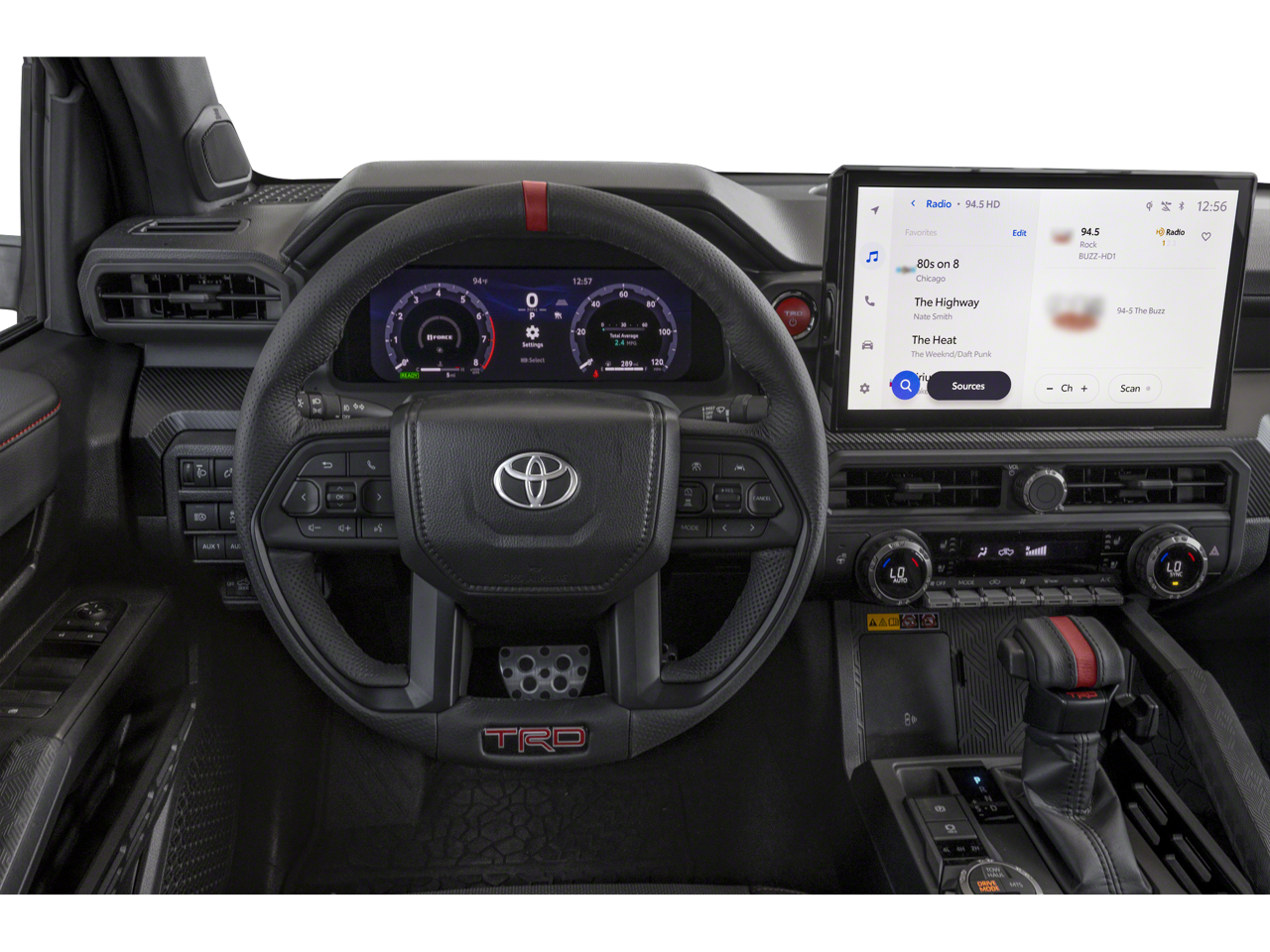 This Vehicle Includes the Following Options: TRD Pro Package, 2.4L I4 PDI Hybrid Turbocharged DOHC 16V, 3.583 Axle Ratio, 4-Wheel Disc Brakes, 9 Speakers, ABS brakes, Air Conditioning, Alloy wheels, AM/FM radio: SiriusXM, Anti-whiplash front head restraints, Apple CarPlay/Android Auto, Auto High-beam Headlights, Auto-dimming Rear-View mirror, Automatic temperature control, Bed Scene Lighting (TMS), Brake assist, Bumpers: body-color, Driver door bin, Driver vanity mirror, Dual front impact airbags, Dual front side impact airbags, Electronic Stability Control, Emergency communication system: Safety Connect (1-year trial), Exterior Parking Camera Rear, Four wheel independent suspension, Front anti-roll bar, Front Bucket Seats, Front Center Armrest, Front dual zone A/C, Front fog lights, Front reading lights, Fully automatic headlights, Garage door transmitter: HomeLink, Heads-Up Display, Heated door mirrors, Heated front seats, Heated steering wheel, Htd & Vent TRD Pro IsoDynamic Performance Seats, Illuminated entry, JBL Premium Audio, Knee airbag, Leather Shift Knob, Leather steering wheel, Low tire pressure warning, Navigation system: Drive Connect (1 year trial) includes Cloud Navigation with real time traffic and Google POI, Occupant sensing airbag, Outside temperature display, Overhead airbag, Overhead console, Panic alarm, Passenger door bin, Passenger vanity mirror, Power door mirrors, Power driver seat, Power moonroof, Power passenger seat, Power steering, Power windows, Radio: 14 Toyota Audio Multimedia, Rear anti-roll bar, Rear step bumper, Rear window defroster, Remote keyless entry, Security system, SofTex Seat Trim, Speed control, Speed-sensing steering, Split folding rear seat, Spray-On Bed Liner (TMS), Steering wheel mounted audio controls, Tachometer, Telescoping steering wheel, Tilt steering wheel, Traction control, Trip computer, Turn signal indicator mirrors, Variably intermittent wipers, Ventilated front seats, and Wheels: 18 Black TRD Pro Alloy.