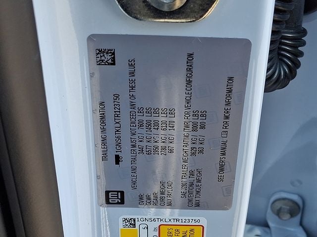 This Vehicle Includes the Following Options: Advanced Security Package (Glass Breakage Sensor, Theft-Deterrent Alarm System, Vehicle Inclination Sensor, and Vehicle Interior Movement Sensor), Advanced Trailering Package (Blind Zone Steering Assist with Trailering, Hitch View with Pan/Zoom Image Adjustment, and Smart Trailer Integration Indicator), High Country Deluxe (Air Ride Adaptive Suspension, Dual-Pane Power Panoramic Sunroof, and Power-Retractable Assist Steps), Max Trailering Package (2-Speed Active Electronic AutoTrac Transfer Case, Hill Descent Control, and Integrated Trailer Brake Controller), Preferred Equipment Group 3LZ (15 Diagonal Multi-Color Head-Up Display, 1st and 2nd Row Color-Keyed Carpeted Floor Mats, 3-Spoke Wrapped Steering Wheel, 3rd Row 60/40 Power-Folding Split-Bench Seat, Bose 10-Speaker Centerpoint Surround Audio System Feature, Bright Front and Rear Door Sill Plates, Chrome Door Handles with Body-Color Strip, Color-Keyed Carpeting Floor Covering, Dual Exhaust System, Floor Console, Front Bucket Seats, Front LED Fog Lamps, Frontal Driver and Outboard Passenger Airbags, Heated 2nd Row Outboard Seats, Heated Steering Wheel, Inside Rearview Auo-Dimming Rear Camera Mirror, Interior Camera, Key Card, LED Headlamps with LED Daytime Running Lamps, LED Tail Lamps, Magnetic Ride Control Suspension, Memory Settings, Outside Heated Power-Adjustable Mirrors, Power Release 2nd Row Bucket Seats, Power Tilt and Telescopic Steering Column, Rear Power Liftgate, Remote Start, Set of 4 Wheel Locks, SiriusXM with 360L Trial Subscription, Universal Home Remote, Wheels: 22 x 9 Bright Machined Aluminum, and Wireless Phone Charging), Technology & Entertainment Package (Rear Seat Media System), Technology Package (AutoSense Hands-Free Power Liftgate), 4WD, Jet Black/Mocha Leather, 10 Speakers, 3.23 Rear Axle Ratio, 3rd row seats: split-bench, 4-Way Power Driver Lumbar Seat Adjuster, 4-Way Power Front Passenger Lumbar Seat Adjuster, 4-Wheel Disc Brakes, 8-Way Power Driver Seat Adjuster, 8-Way Power Front Passenger Seat Adjuster, ABS brakes, Adaptive suspension, Air Conditioning, Alloy wheels, AM/FM radio: SiriusXM with 360L, Apple CarPlay/Android Auto, Auto High-beam Headlights, Auto-dimming door mirrors, Auto-dimming Rear-View mirror, Auto-leveling suspension, Automatic temperature control, Brake assist, Bumpers: body-color, Compass, Delay-off headlights, Driver and Front Passenger Heated and Ventilated Seats, Driver door bin, Driver vanity mirror, Dual front impact airbags, Dual front side impact airbags, Electronic Stability Control, Emergency communication system: OnStar and Chevrolet connected services capable, Exterior Parking Camera Rear, Extra Capacity Cooling System, Four wheel independent suspension, Front anti-roll bar, Front Center Armrest, Front dual zone A/C, Front fog lights, Front reading lights, Fully automatic headlights, Garage door transmitter, Heads-Up Display, Heated door mirrors, Heated Driver and Front Passenger Seats, Heated front seats, Heated rear seats, Heated steering wheel, Illuminated entry, Low tire pressure warning, Memory seat, Navigation system: Google built-in compatibility (select service plan required, terms and limitations apply), Occupant sensing airbag, Outside temperature display, Overhead airbag, Overhead console, Panic alarm, Passenger door bin, Passenger vanity mirror, Perforated Leather Seat Trim, Power door mirrors, Power driver seat, Power Liftgate, Power passenger seat, Power steering, Power windows, Premium audio system: Chevrolet Infotainment 3 Premium, Radio data system, Radio: 17.7 Diagonal Advanced Color LCD Display, Rain sensing wipers, Rear air conditioning, Rear anti-roll bar, Rear reading lights, Rear window defroster, Rear window wiper, Remote keyless entry, Security system, Speed control, Speed-sensing steering, Split folding rear seat, Spoiler, Steering wheel memory, Steering wheel mounted audi