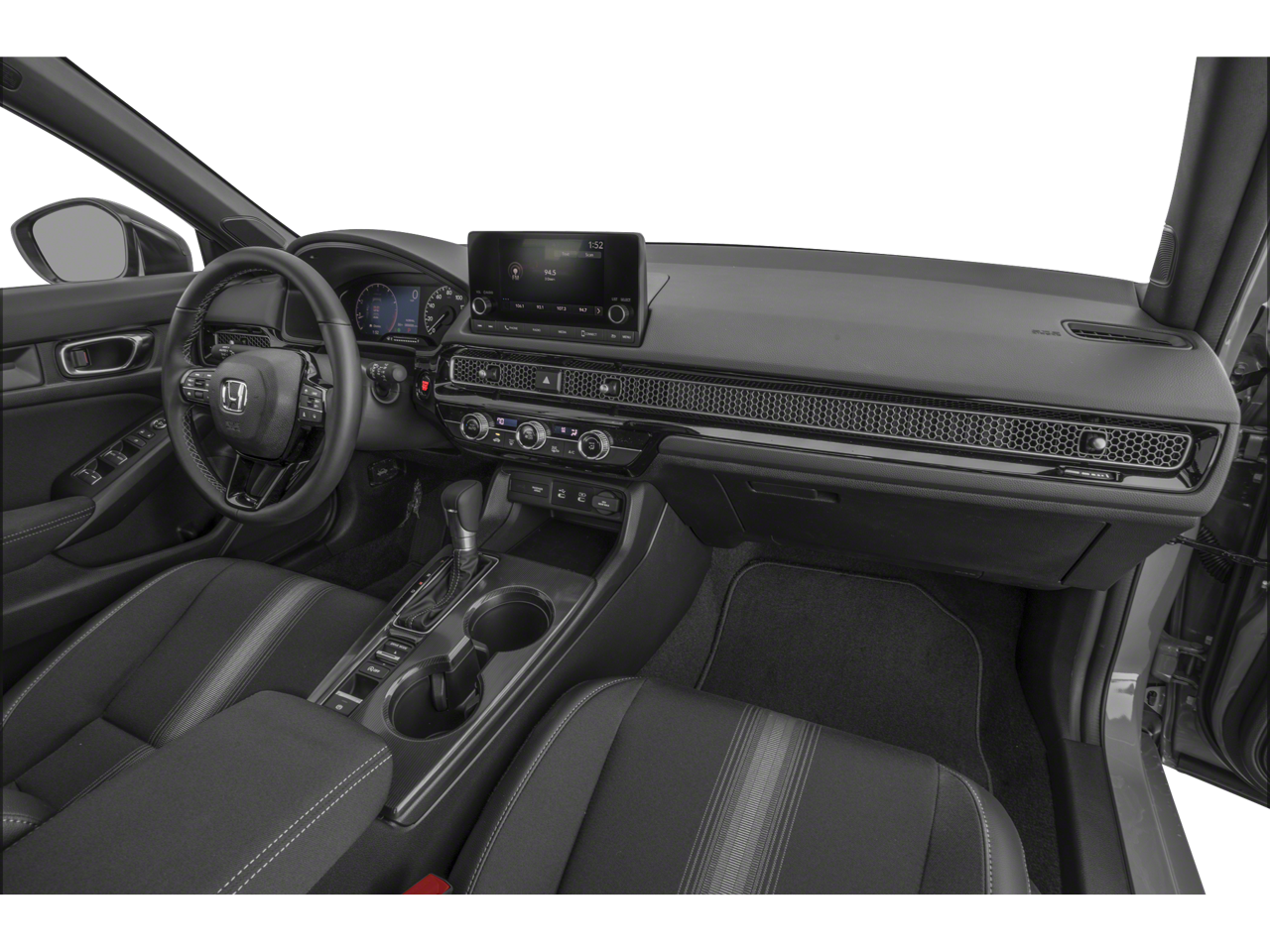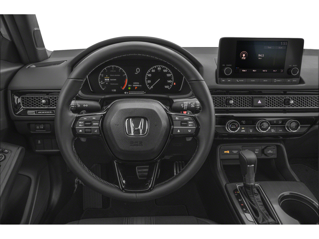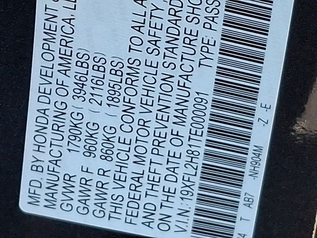 THIS VEHICLE INCLUDES THE FOLLOWING FEATURES AND OPTIONS: Black w/Cloth/Leatherette Seating Surfaces, 4-Wheel Disc Brakes, 8 Speakers, ABS brakes, Adaptive Cruise Control: Adaptive Cruise Control (ACC) with Low-Speed Follow, Air Conditioning, Alloy wheels, AM/FM radio, Apple CarPlay/Android Auto, Auto High-beam Headlights, Automatic temperature control, Blind Spot Information (BSI) System warning, Brake assist, Bumpers: body-color, Cloth/Leatherette Seating Surfaces, Delay-off headlights, Driver door bin, Driver vanity mirror, Dual front impact airbags, Dual front side impact airbags, Electronic Stability Control, Emergency communication system: HondaLink, Exterior Parking Camera Rear, Four wheel independent suspension, Front anti-roll bar, Front Bucket Seats, Front Center Armrest, Front reading lights, Fully automatic headlights, Heated door mirrors, HondaLink, Illuminated entry, Knee airbag, Lane departure: Lane Keeping Assist System (LKAS) active, Leather Shift Knob, Low tire pressure warning, Occupant sensing airbag, Outside temperature display, Overhead airbag, Panic alarm, Passenger door bin, Passenger vanity mirror, Power door mirrors, Power steering, Power windows, Radio data system, Radio: 180-Watt Audio System, Rear anti-roll bar, Rear side impact airbag, Rear window defroster, Rear window wiper, Remote keyless entry, Security system, Speed control, Speed-sensing steering, Split folding rear seat, Steering wheel mounted audio controls, Tachometer, Telescoping steering wheel, Tilt steering wheel, Traction control, Trip computer, and Wheels: 18 Gloss Black Alloy.